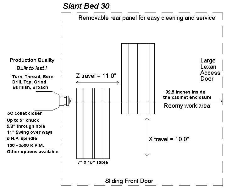 - - - Low cost way to keep production flowing. Multi bar feeder - - - - - - - - - Stock up on raw materials for continuos production. Higher spindle speeds - - - - - Optional 6,000 RPM is available. C axis indexing - - - - - - - - - Combined with live tooling this will greatly expand your possibilities. Spray mist coolant system - - - When flood coolant is too much this will keep the tools cool. Work holding chuck - - - - - - - For larger work holding needs. Parts catcher - - - - - - - - - - If your work requires one, we can supply it. Tooling packages - - - - - - - - Just let us know what you need. Single phase 220VAC - - - - - Electronic frequency inverter works silently without drawing added power. |